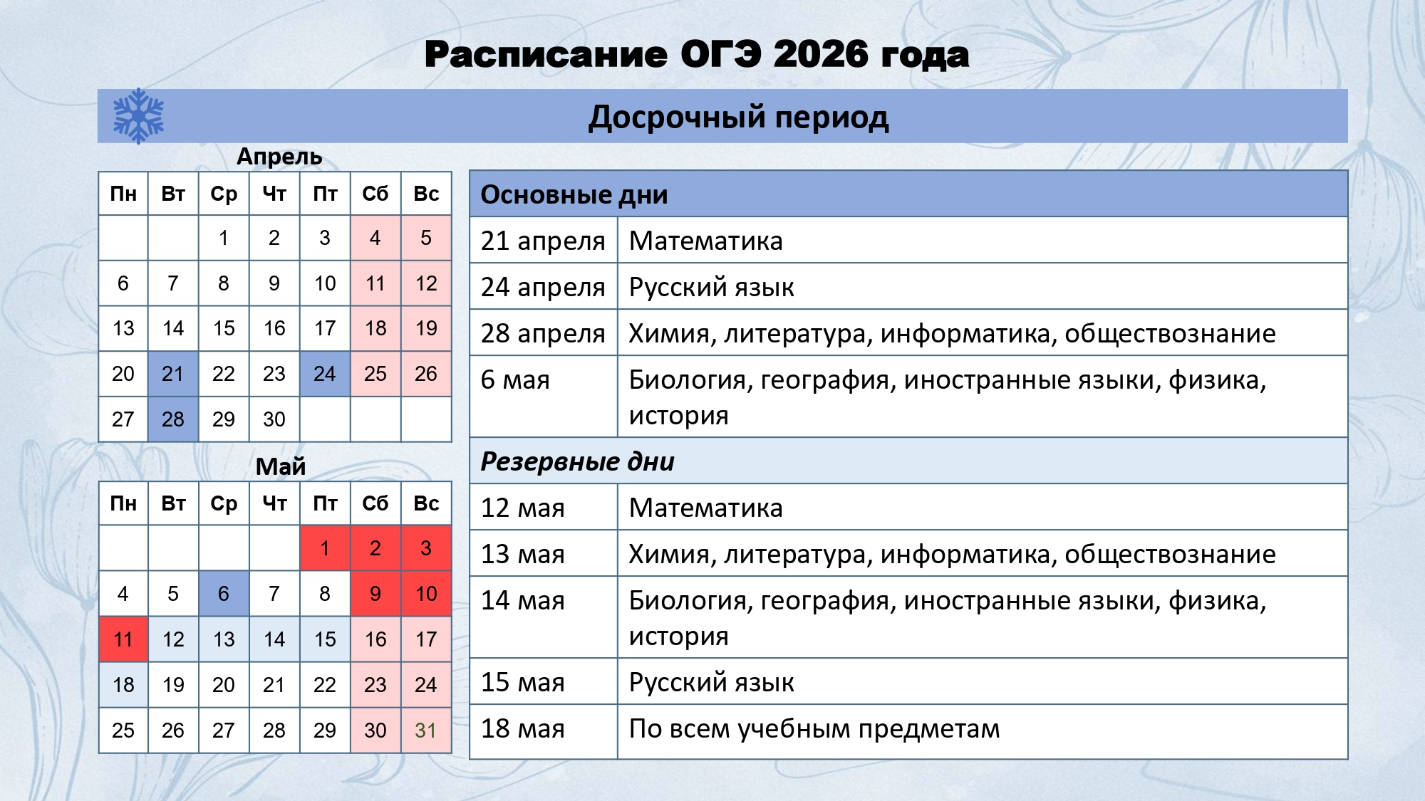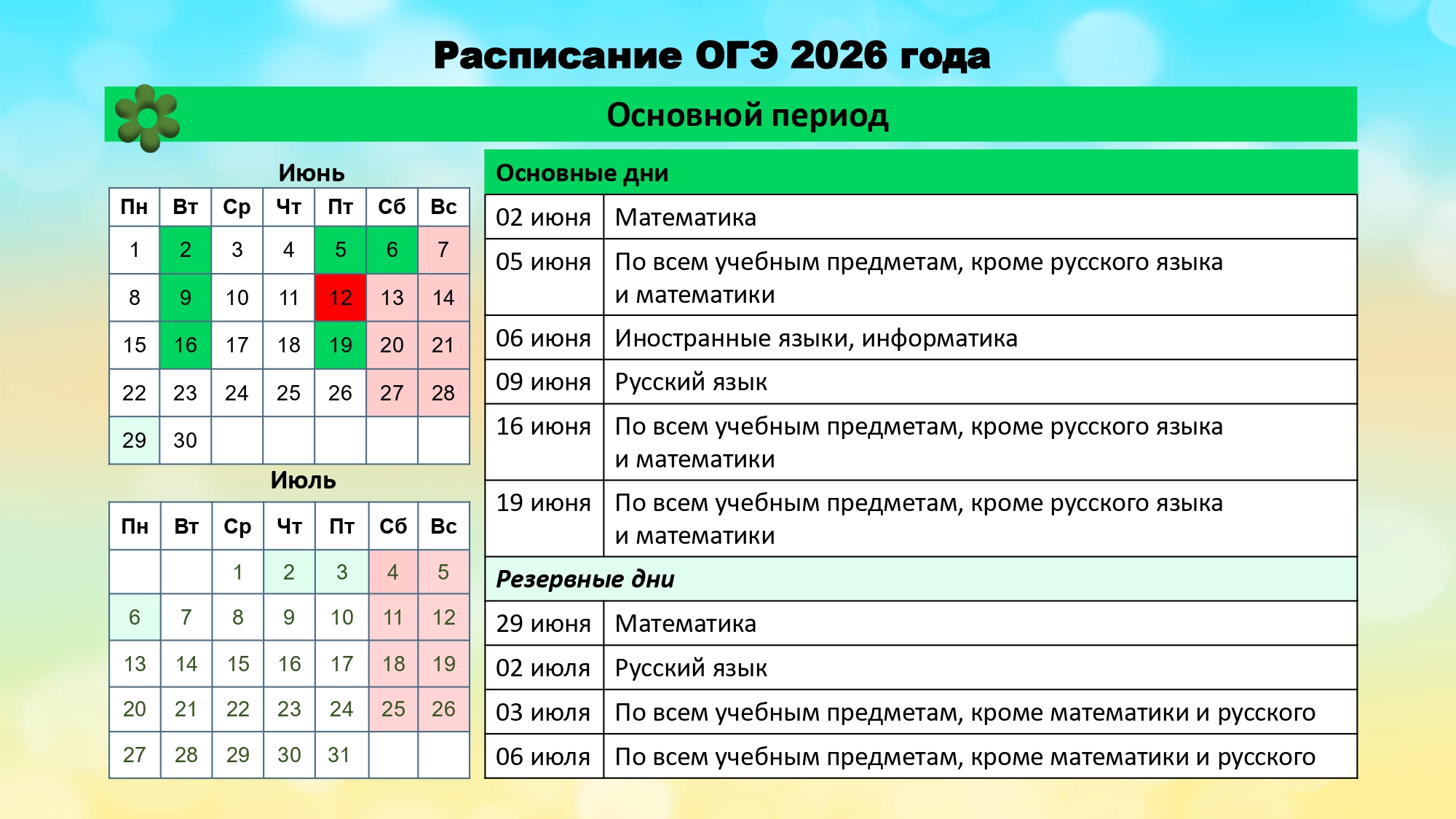 С учетом актуальных изменений, внесенных Рособрнадзором в график проведения ГИА, резервными датами для получения допуска к ОГЭ-2024 станут: вторая среда марта (13.03.24) и третий понедельник апреля (13.04.24)