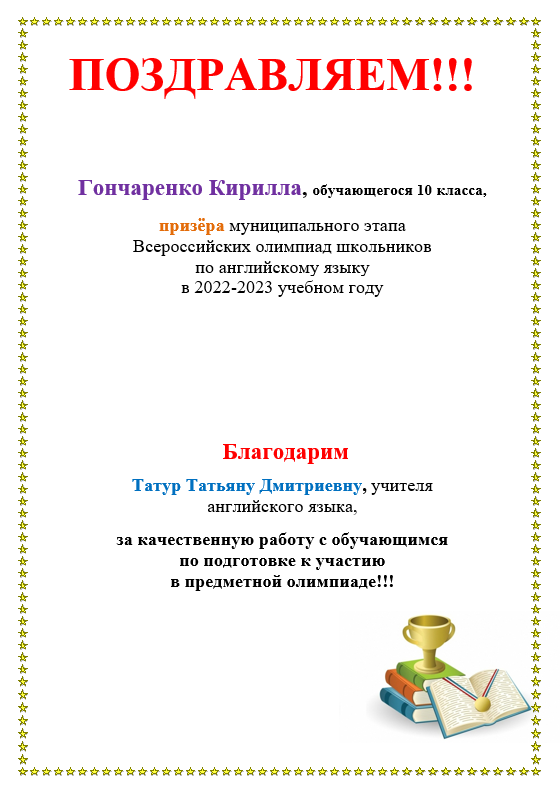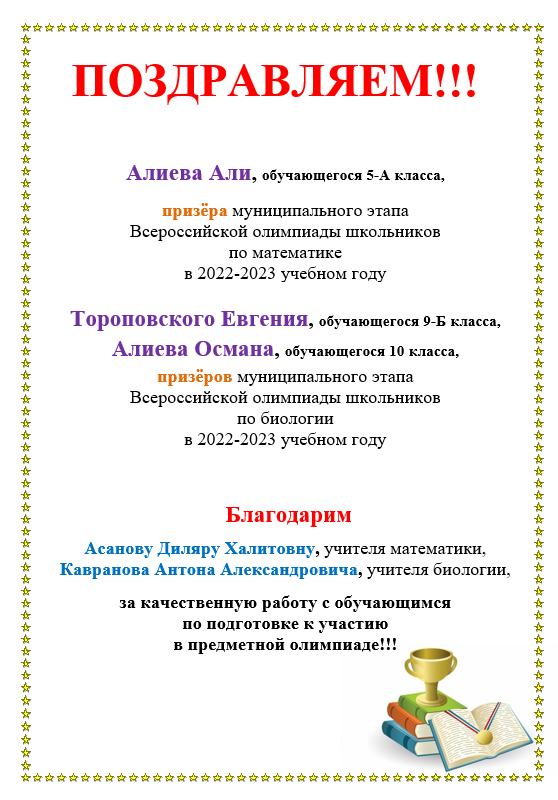 Поздравляем всех участников, призеров и победителей с успешным выступлением на олимпиаде! Благодарим вас за смелость и отвагу, за волю к победе, за веру в успех.